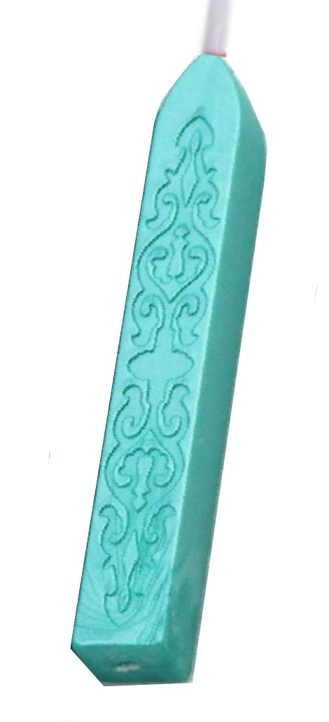 Bâtonnet de cire à cacheter pour réaliser des cachets de cire de couleur cyan.