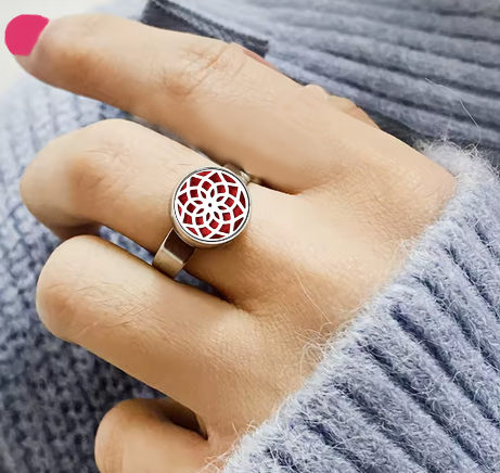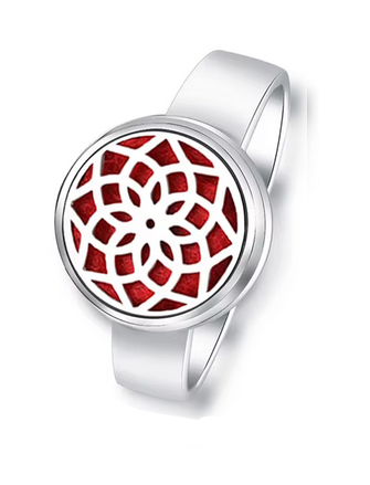 Bague d'aromathérapie modèle ROSACE en acier inoxydable ajustable.