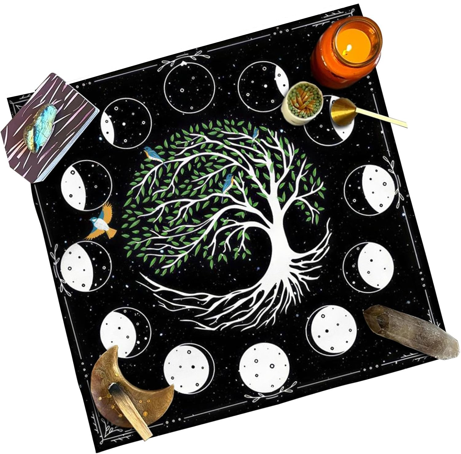 Fabriquée à partir de matériaux de haute qualité, cette nappe est parfaite pour n'importe quelle pièce et ajoute une touche d'élégance à vos jeux de tarot. Les motifs des différentes phases de la lune sur le tissu en noir et blanc créent une atmosphère mystique qui vous aidera à vous connecter avec votre intuition et à améliorer vos lectures. La représentation des oiseaux apporte une note de gaiéte et de liberté.