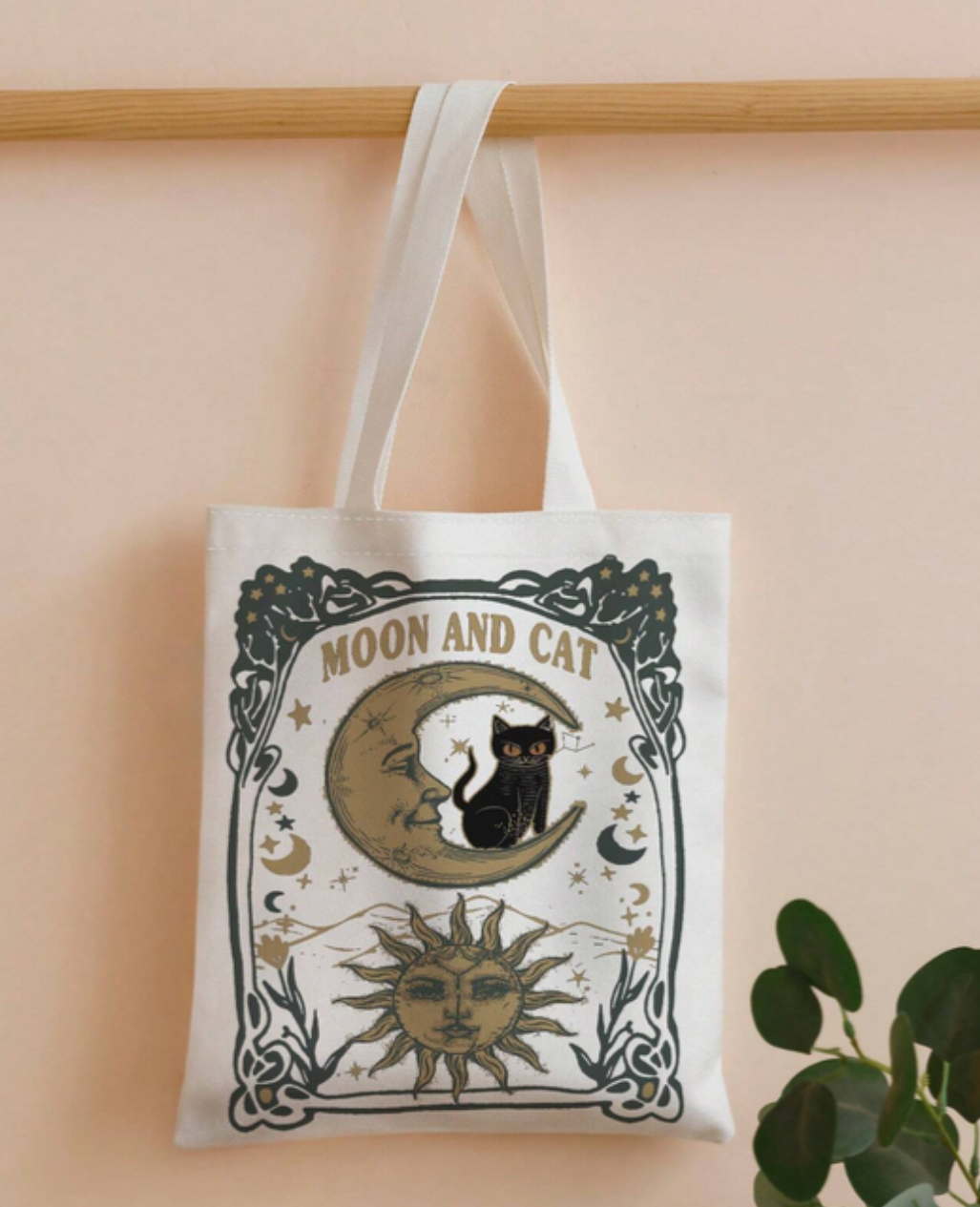 Avec ce tote bag MOON AND CAT, transportez bien plus que vos affaires, transportez un peu de mysticisme à chacun de vos pas.